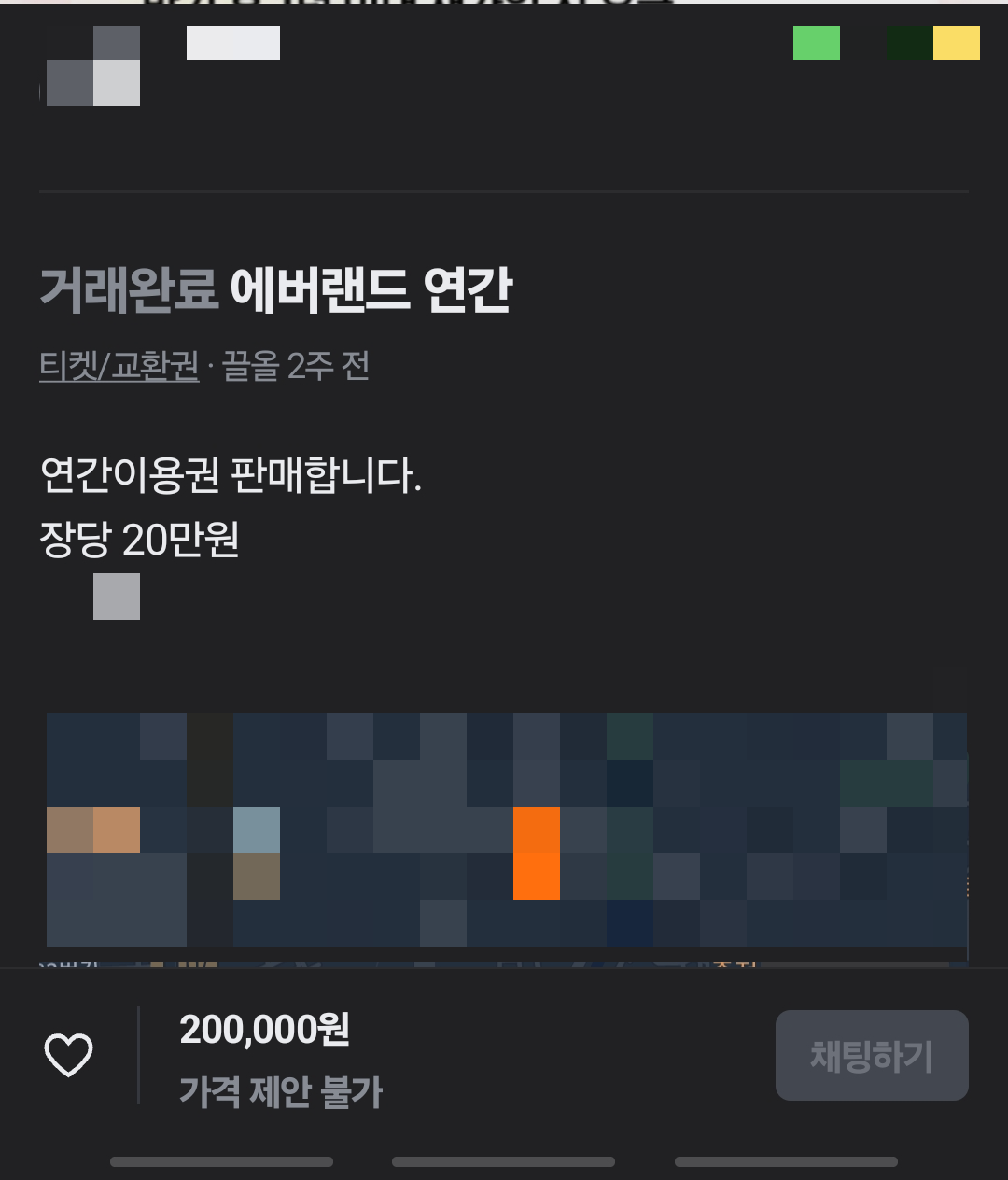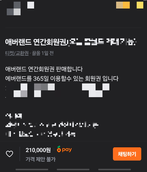 지금 제가 있는 곳에서 검색해보면 365일 이용 가능한 회원권이 20~21만원에 거래되고 있네요. 위에 보시면 아시겠지만 원래는 성인기준 29만원이니 확실히 저렴하지요? 20만원에 올린 거래글은 이미 거래 완료 된게 많고, 21만원에 올라와있는 글들은 아직 거래 전인게 많더라고요. 20~21만원 선인거 같으니 그 정도 기준선에서 보시면 될 것 같아요.