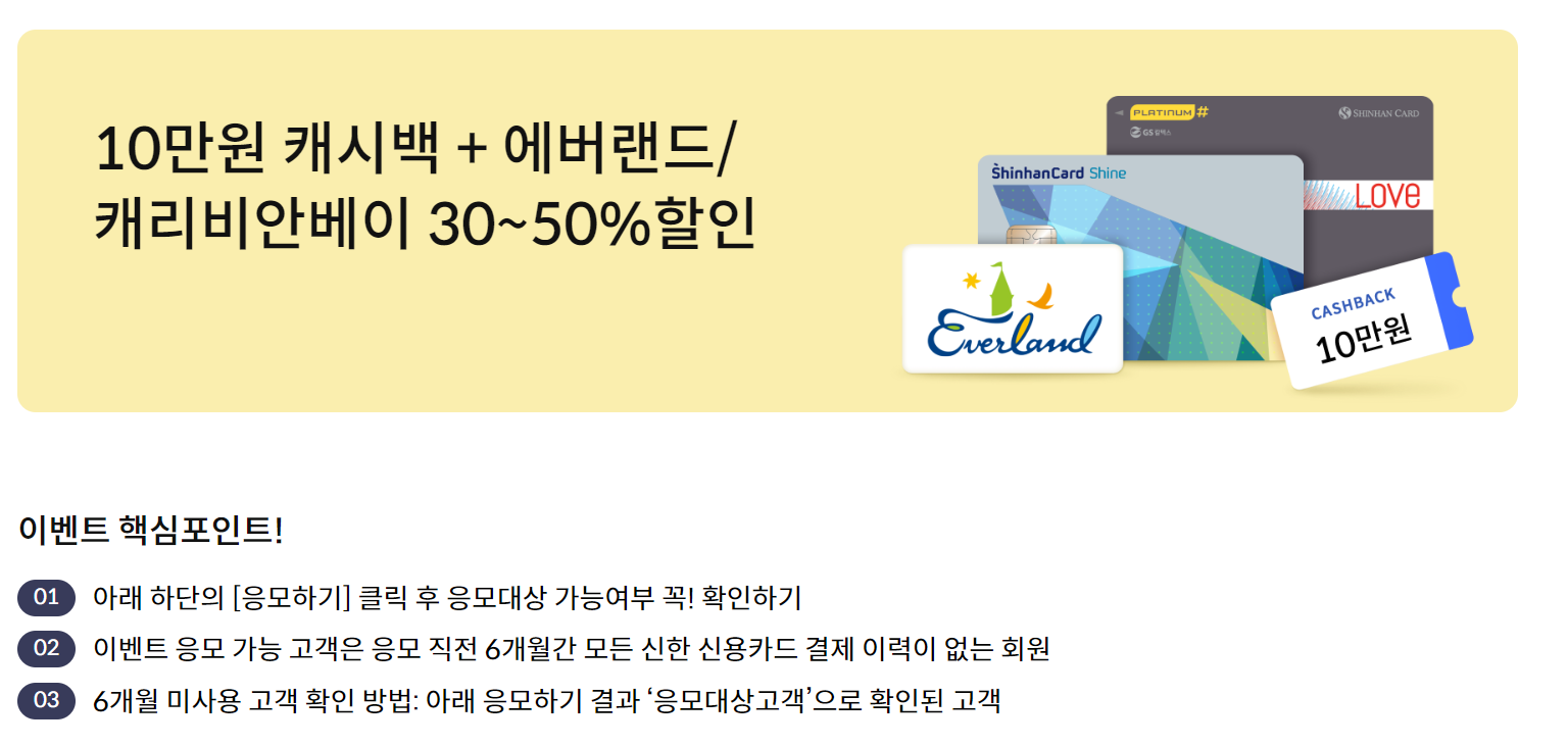 8월 한정으로 진행하는 신한카드 캐시백 이벤트도 있으니 참고하세요!