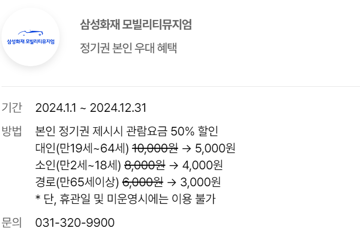 (삼성화재 자동차박물관) 관람요금 50% 할인